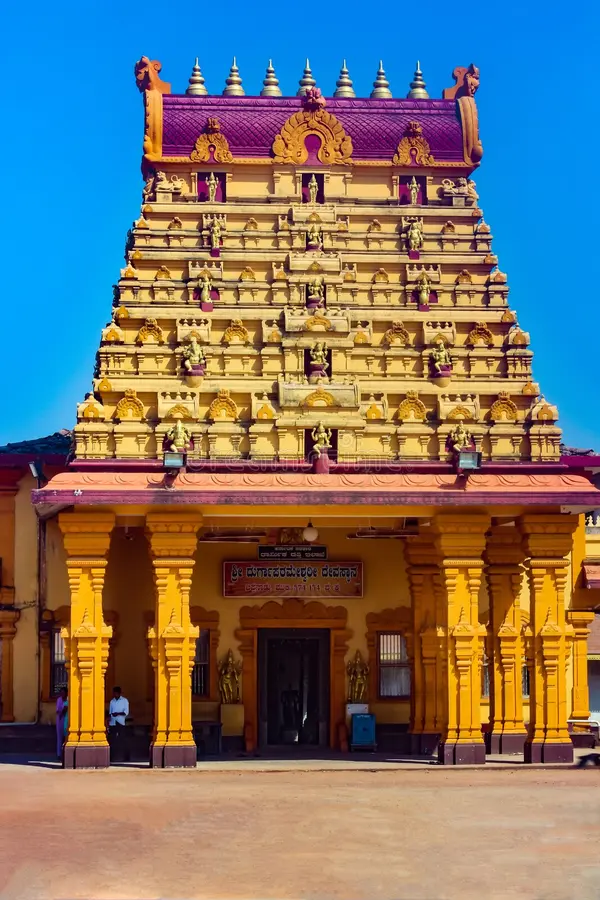 Kateel, a prominent pilgrimage site, is situated on the banks of the Nandhini River, surrounded by lush landscapes and towering hills. The temple here is dedicated to Goddess Durga Parameshwari, also known as Bhramaree, a name that refers to the ‘fierce and powerful bee.’ Located about 26 kilometers north of Mangalore in the Dakshina Kannada district of Karnataka, it holds immense spiritual significance and is considered one of the holiest places in Hinduism. The temple attracts thousands of devotees, especially during the monsoon season, when the Nandhini River swells dramatically, its turbulent waters echoing the shape of a giant serpent. The picturesque beauty of the area, particularly during this time, adds to the temple’s sacred and serene atmosphere.
