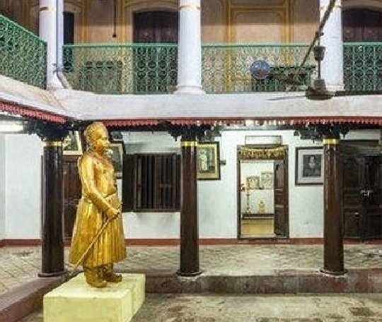 Blend of French and Tamil Styles: The house is a unique fusion of French colonial and Tamil architectural styles, featuring European-style facades combined with traditional Tamil wooden pillars and verandas.