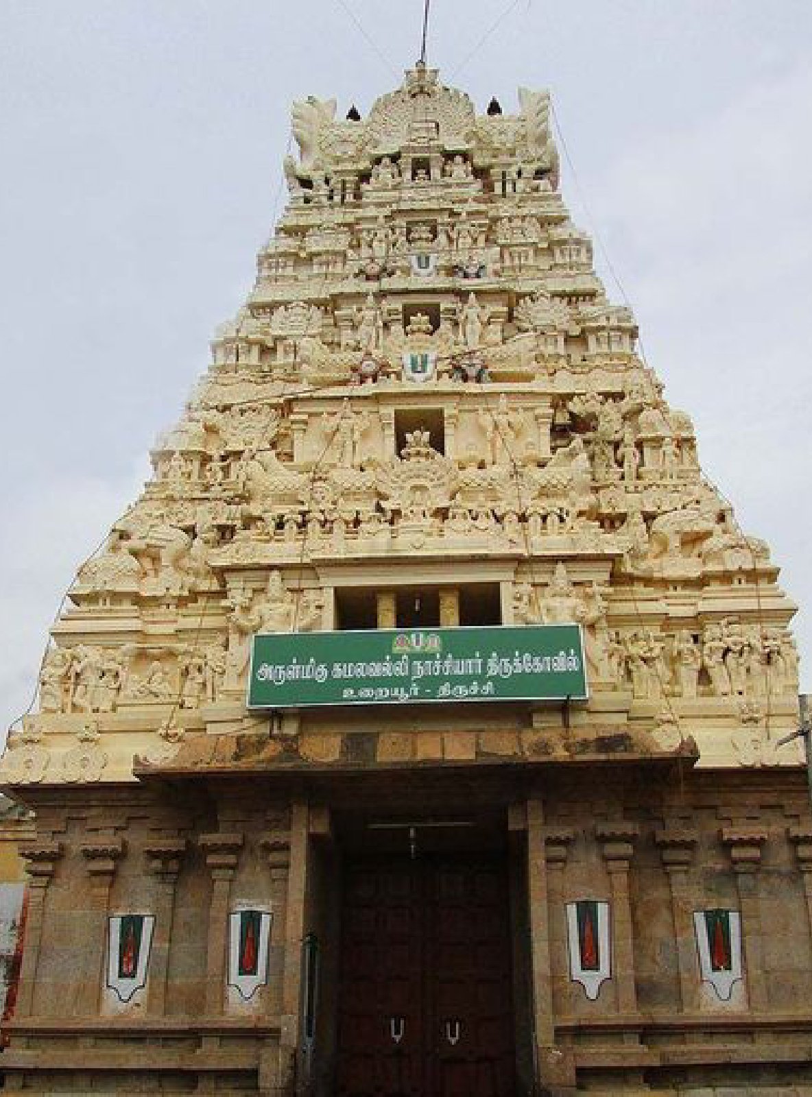 A Chola king named Nandha Cholan, longing for an heir, fervently prayed to Lord Vishnu. Blessed with a vision, he was promised a daughter who would marry the Lord at the right age. The king found the infant on a lotus in a forest tank and named her Kamalavalli. As she grew, Kamalavalli fell in love with Lord Renganatha Swamy of Srirangam. Their divine union is celebrated today as the “Serthi Sevai Festival.” In honor of this, Nandha Cholan built the temple, where the Lord is fondly called “Azhagiya Manavala Perumal.”